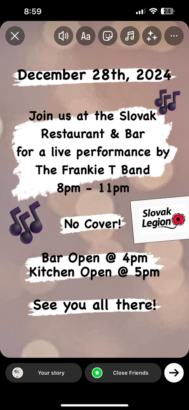 Enjoy some great food from our Slovak Legion East End Bar & Restaurant with your friends…a fun night out!