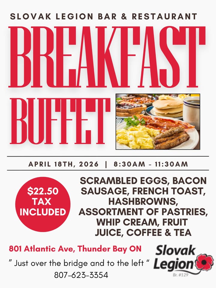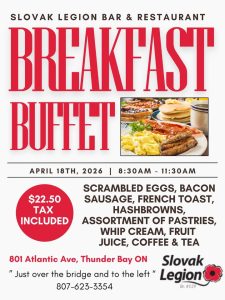 Saturday Breakfast Brunch at the Slovak Legion Saturday April 18