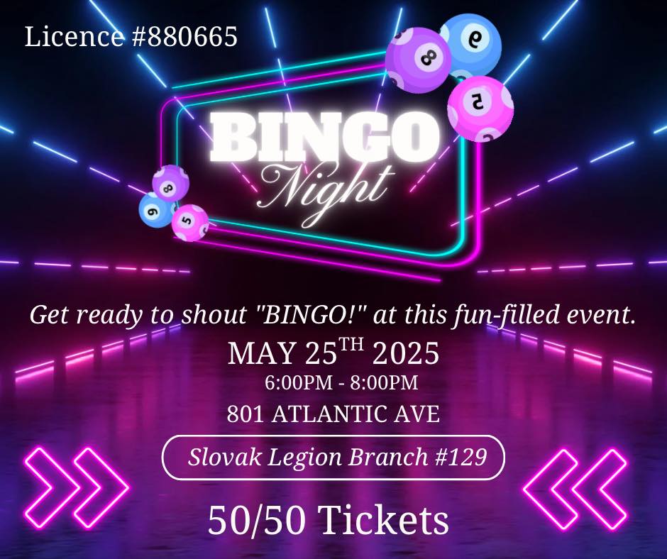Slovak Legion Fundraiser Bingo Night–time to have some FUN! Licence Number 880665