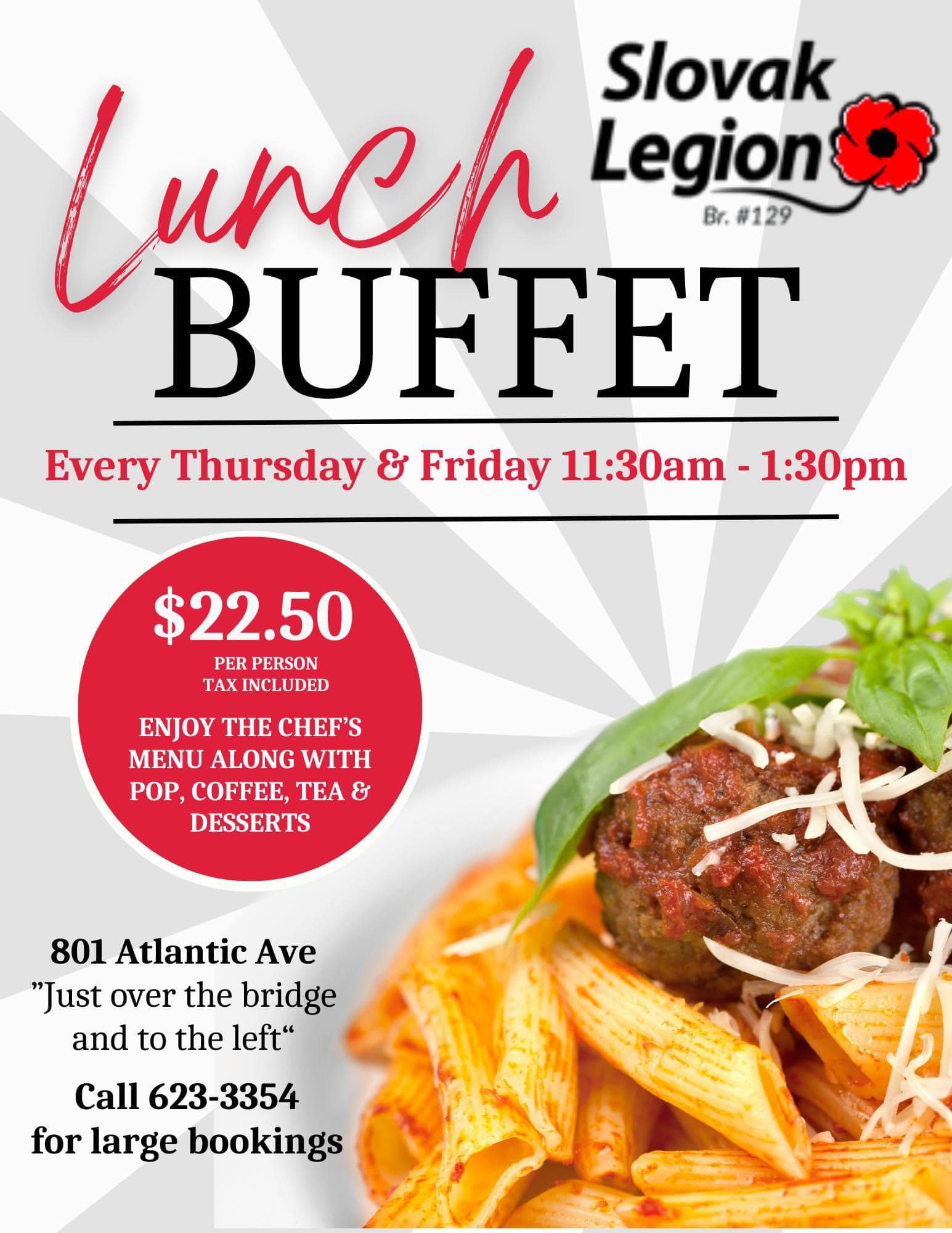 Come out & enjoy our Slovak Legion Lunch Buffet as it returns this Friday January 3 from 11:30am to 1:30pm. It includes dessert, and